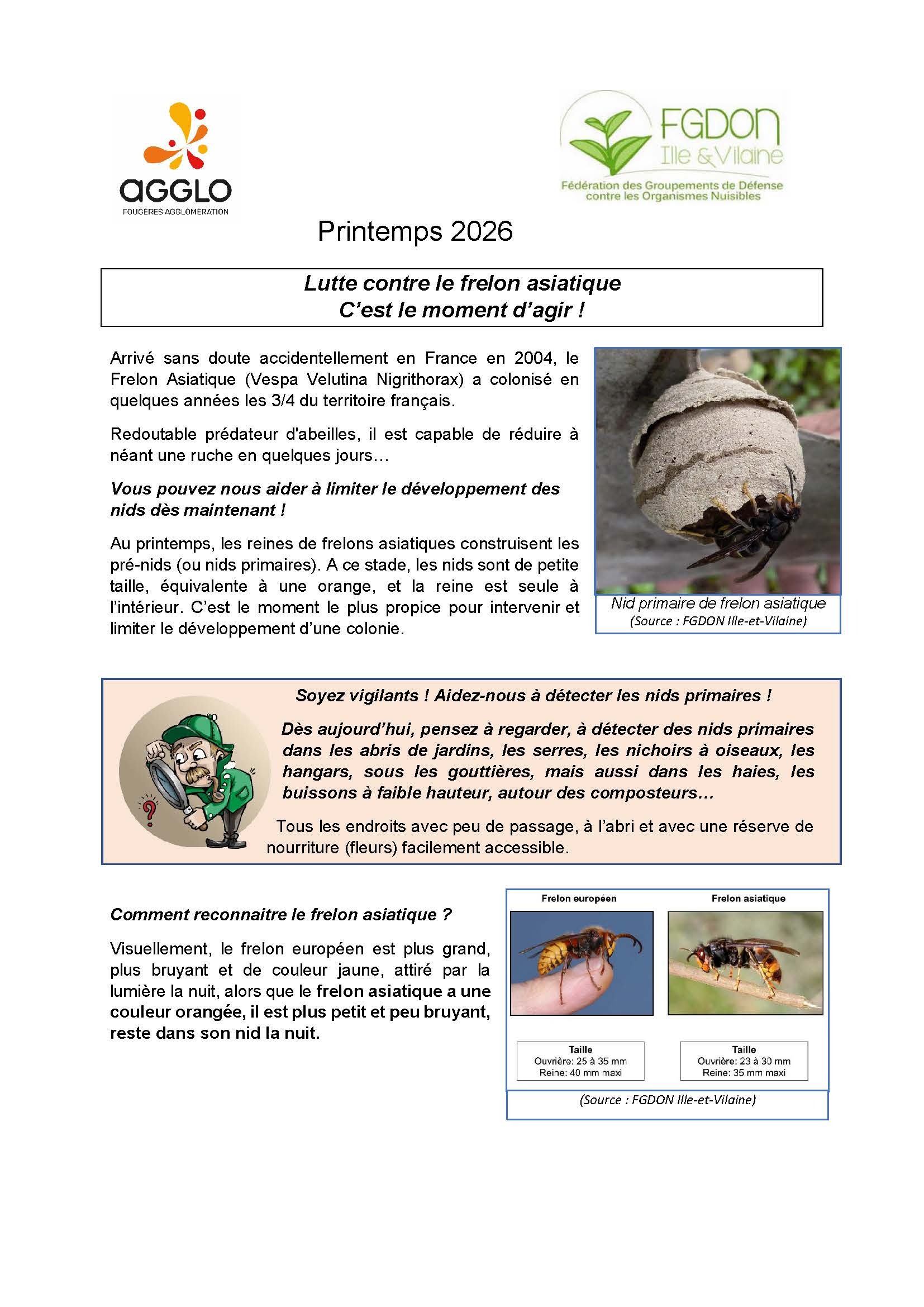 La campagne 2026 est officiellement lancée et le standard frelon asiatique est ouvert auprès de la FGDON 35.