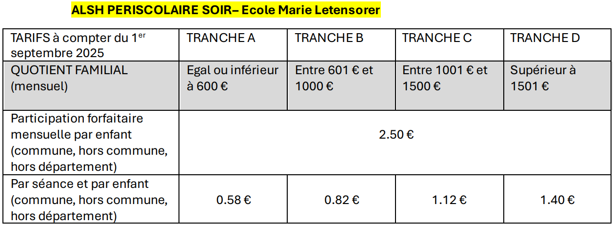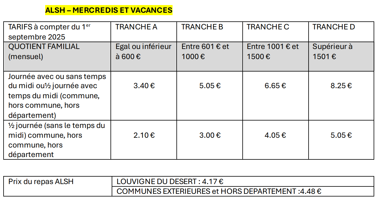 - Vacances de Noël : du samedi 20 décembre au dimanche 4 janvier 2026 (ouverture de l’alsh : dates à venir)