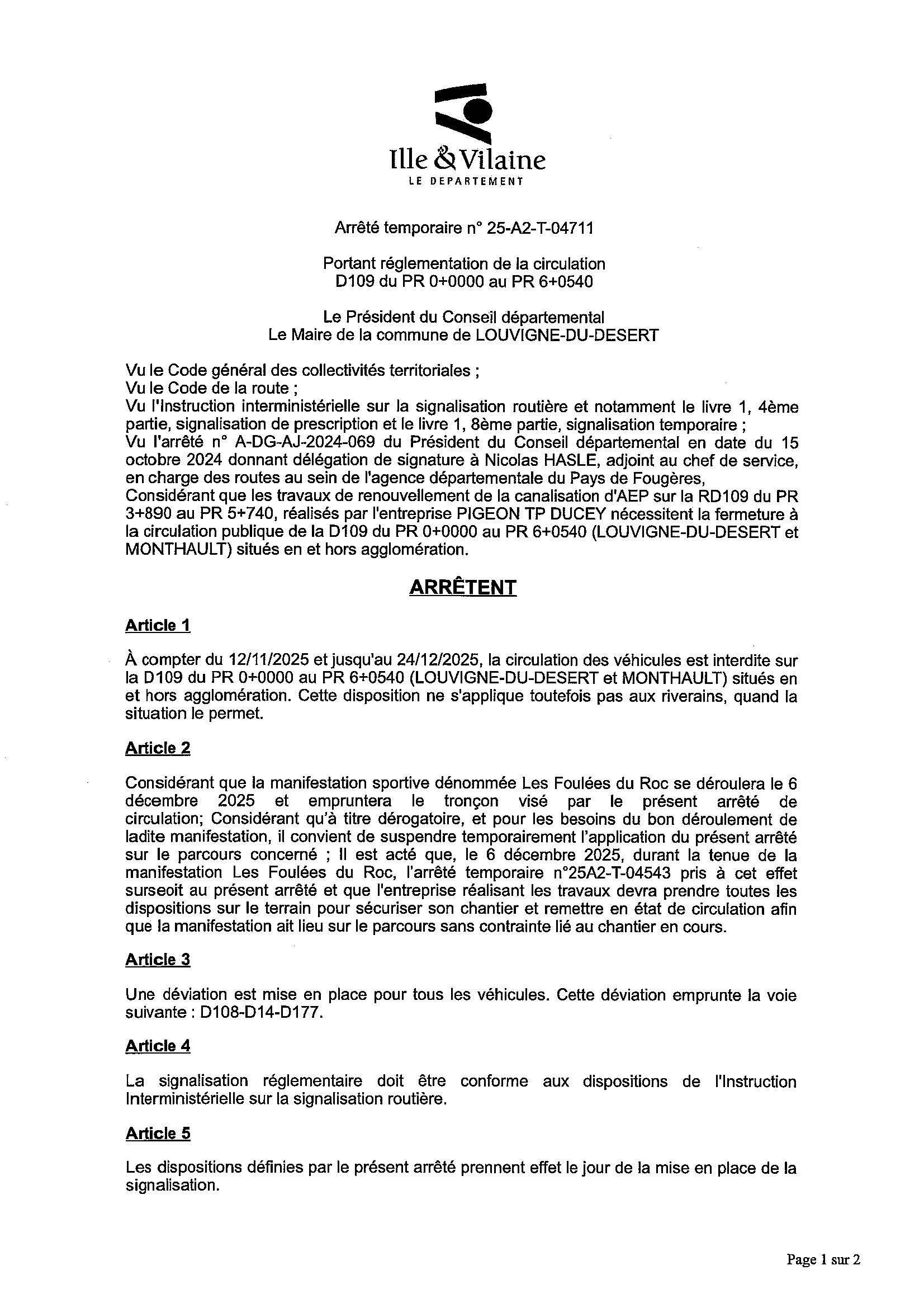 Une déviation sera mise en place pendant 6 semaine (hors période fêtes de Noël)
