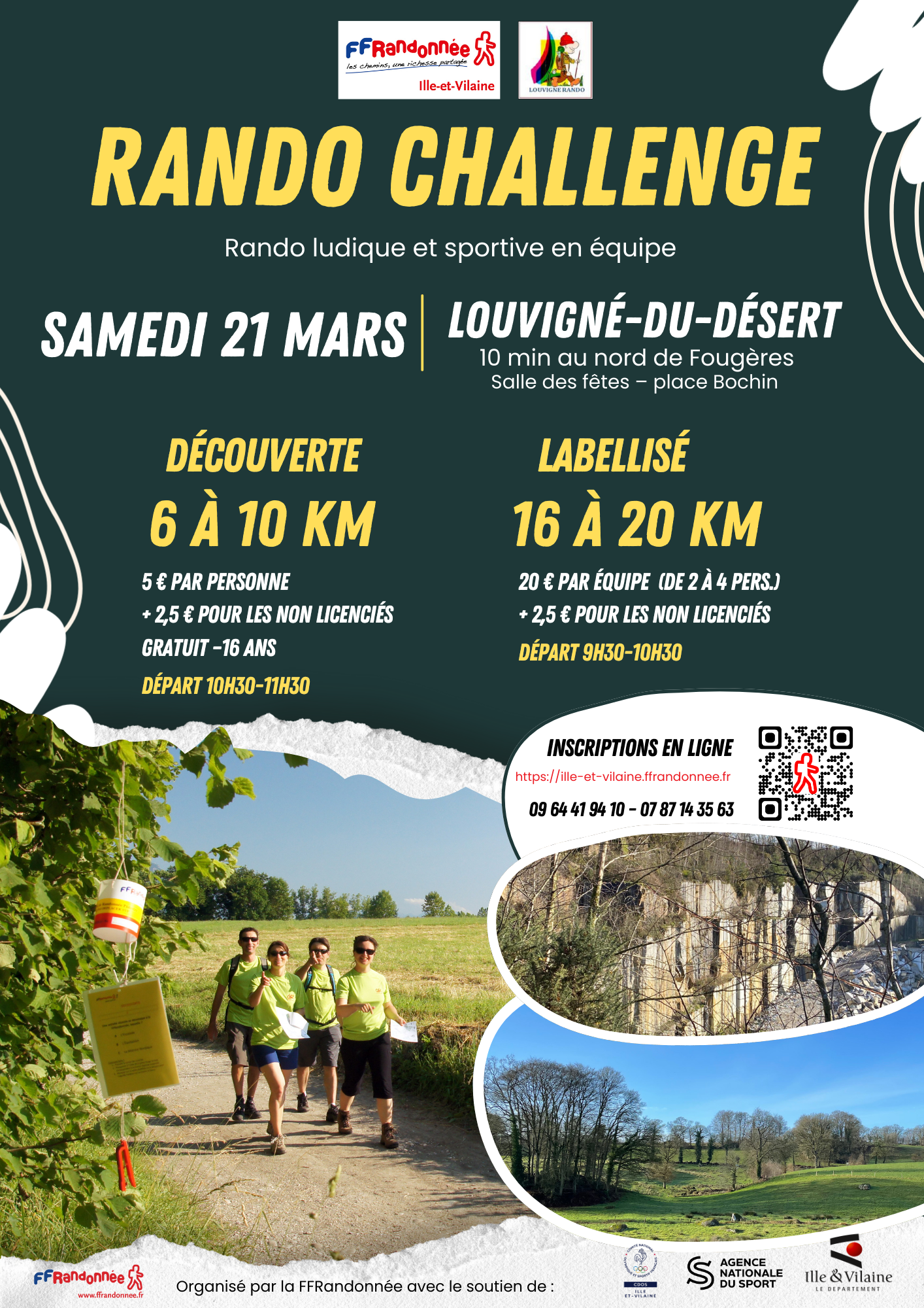 Le club Louvigné rando organise en collaboration avec le comité de randonnée 35 une rando Challenge le samedi 21 mars 2026.